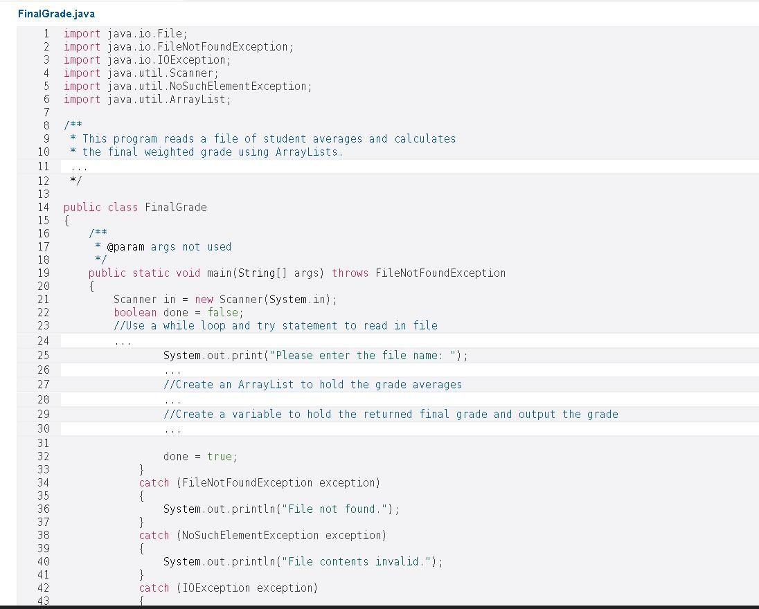Solved FinalGrade.java 1 import java.io.File; 2 import | Chegg.com