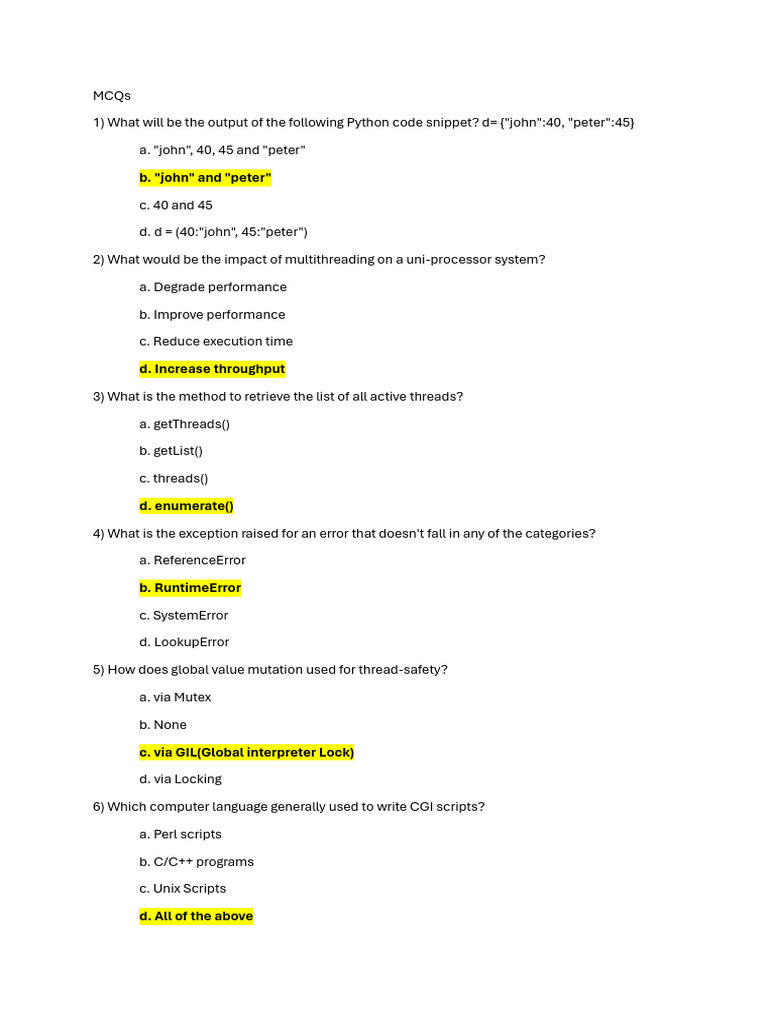 Python MCQs: 1000 Questions & Answers | PDF | Anonymous Function ...