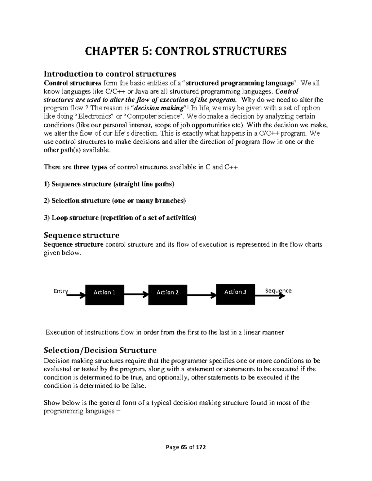 CHAPTER 5: CONTROL STRUCTURES in C Programming (SP101) - Studocu