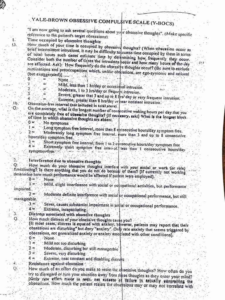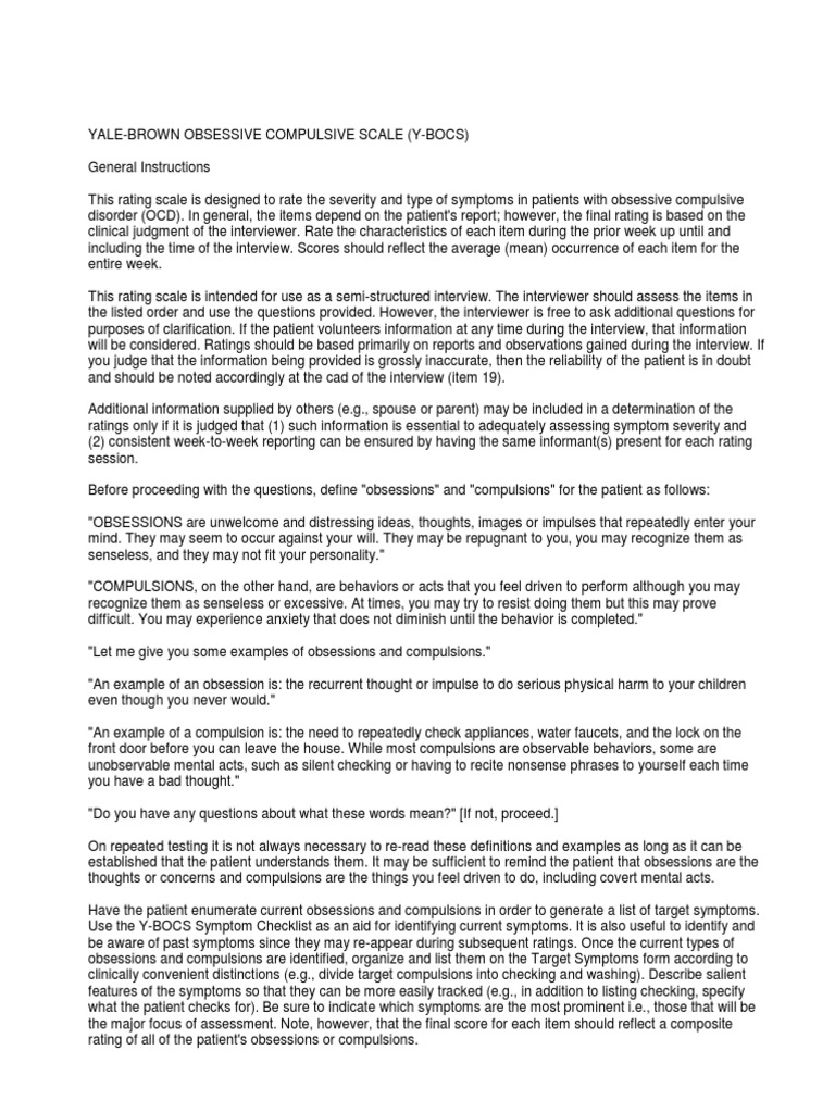 04 Y BOCS w Checklist | Obsessive–Compulsive Disorder | Psychiatric ...
