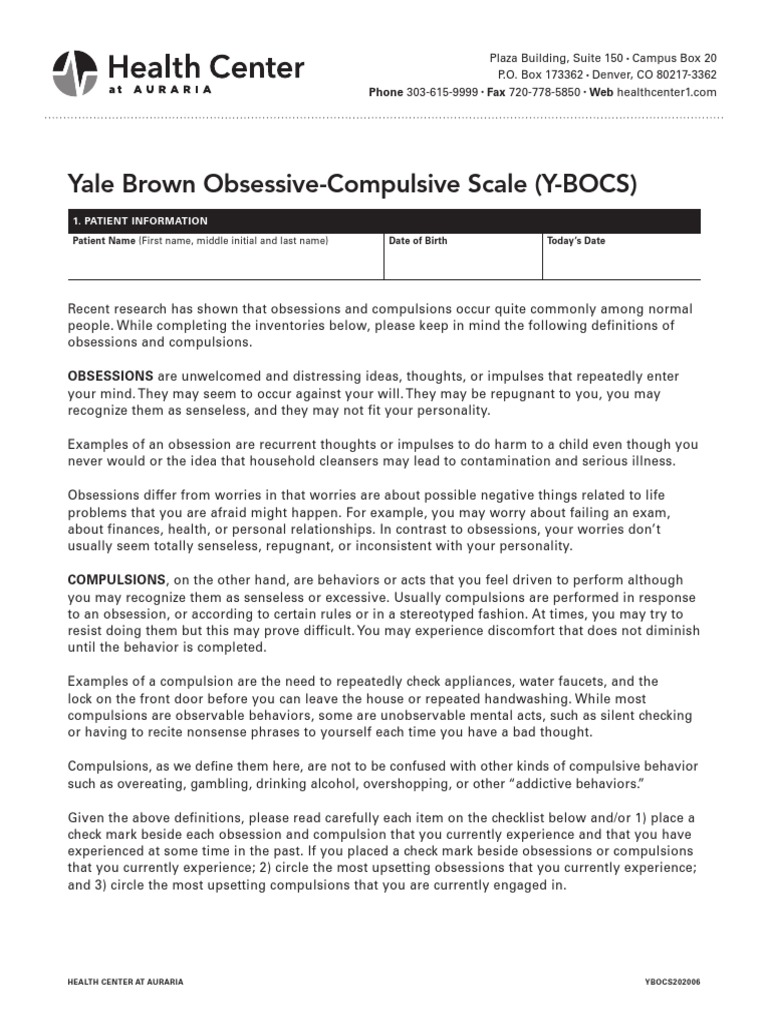 Y Bocs Information Sample | PDF | Obsessive–Compulsive Disorder ...