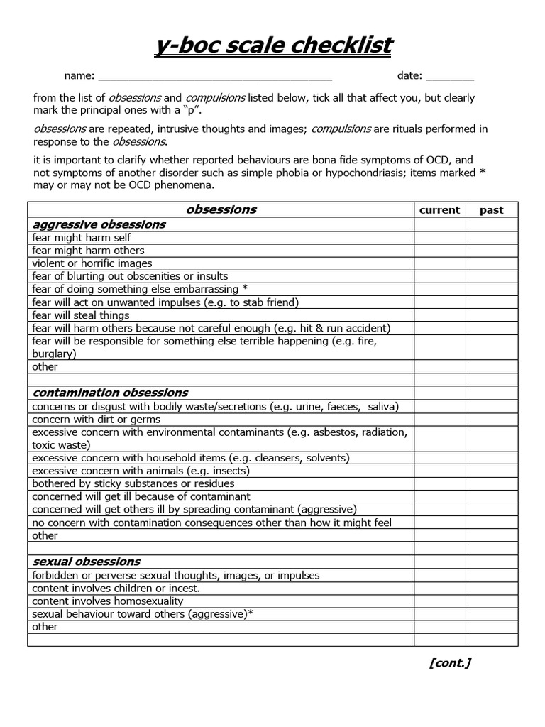 04 Y BOCS W Checklist | PDF | Obsessive–Compulsive Disorder ...