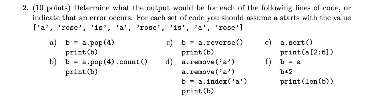 Solved (a) The following Python code snippet produces which | Chegg.com