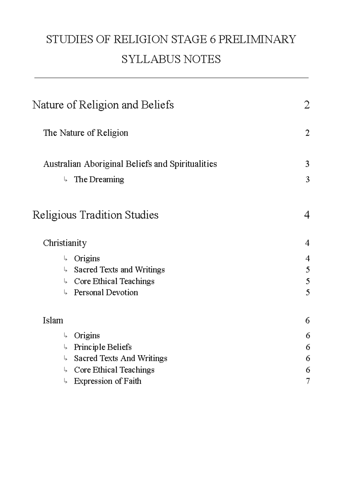 Studies OF Religion Stage 6 Preliminary Syllabus Notes - STUDIES OF ...
