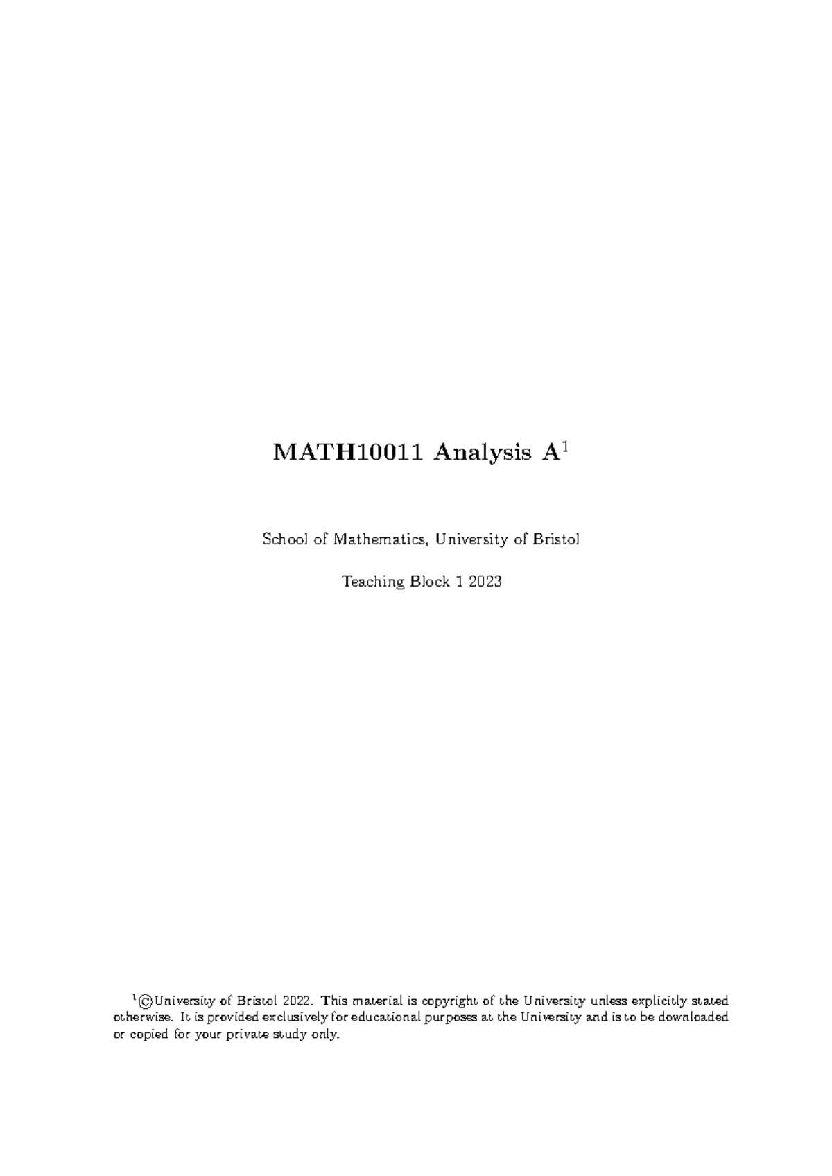 MA140-10 Mathematical Analysis 1 | Lecture notes Mathematical Analysis ...