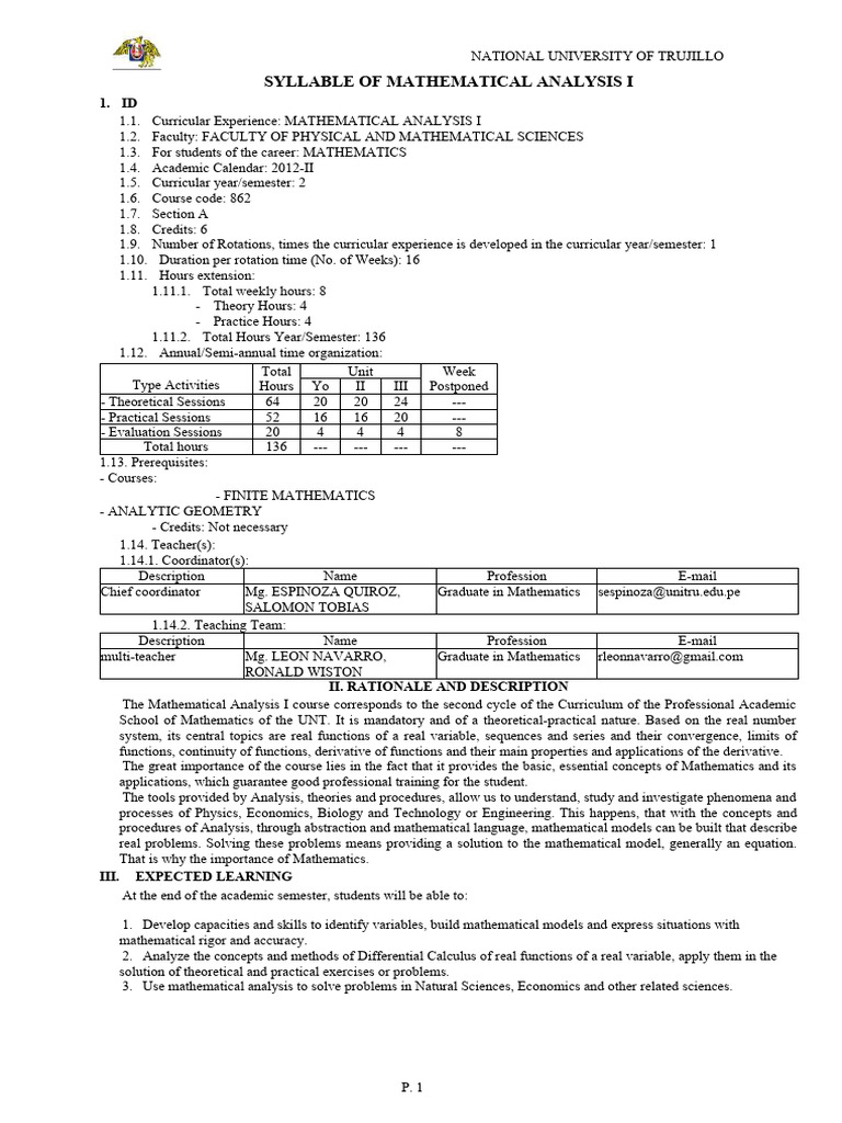 Mathematical Analysis I Syllabus | PDF | Mathematics | Function ...