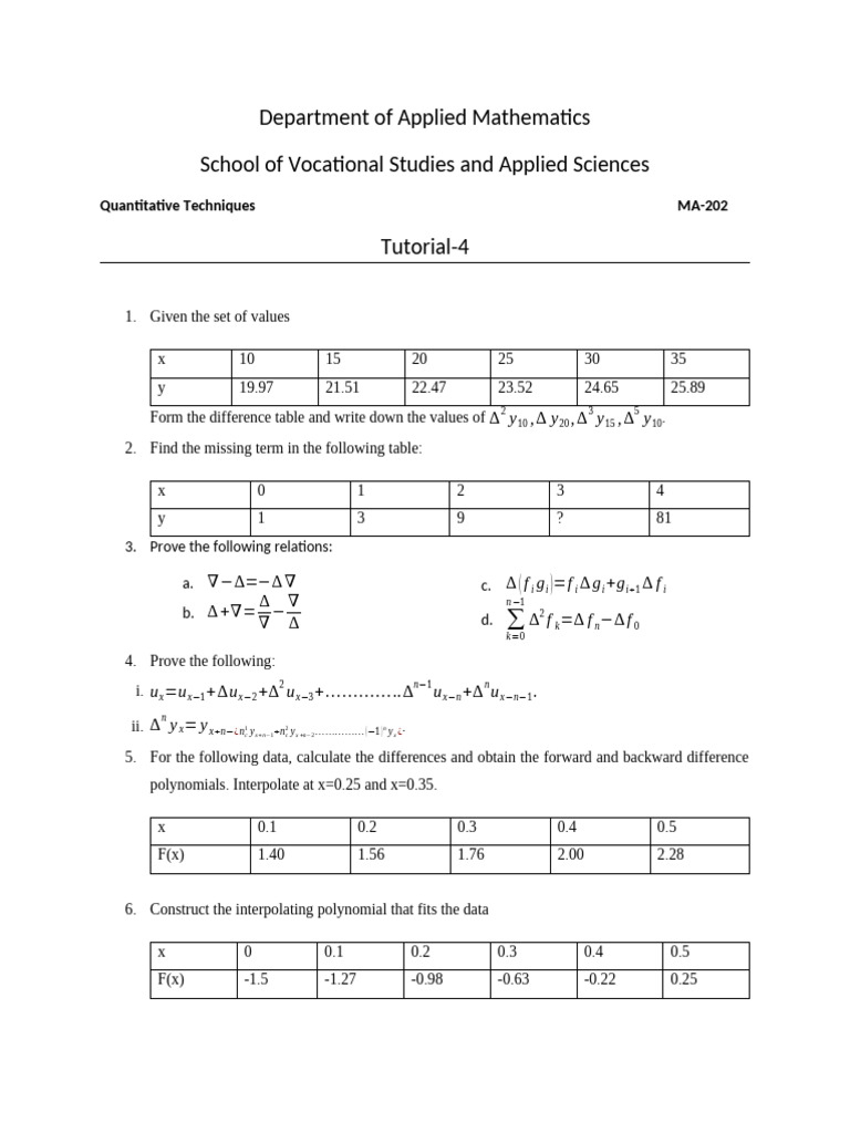 MSC (AP) Sem-II Numerical Methods and Data Analysis-RE - Out | PDF ...