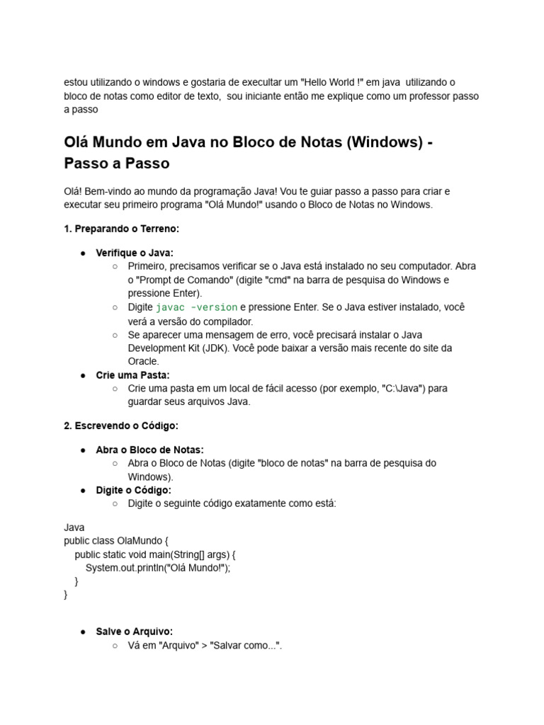 Como criar um código em java no bloco de notas e compilar pelo cmd ...