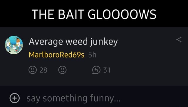 THE BAIT GLOOOOWS Average weed junkey MarlboroRed69s 28 31 say ...