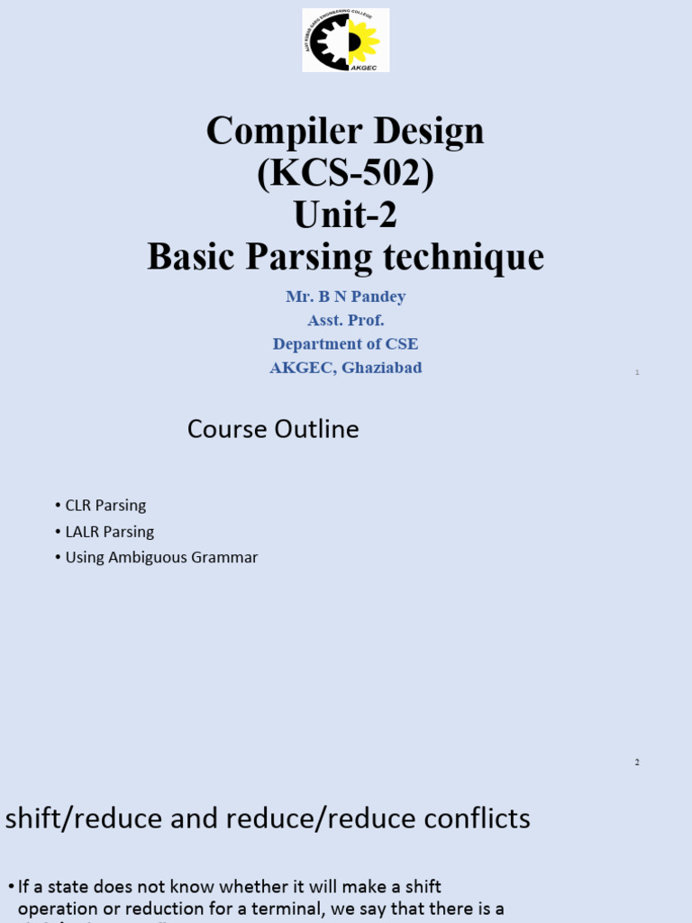UNIT 2 - COMPILE DESIGN UNIT 2 NOTES AKTU - UNIT- (BASIC PARSING ...