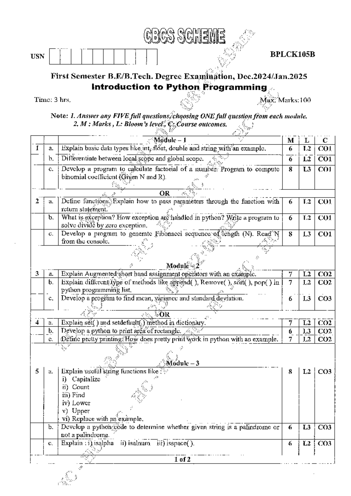 CBCS BPLCK105B First Sem Exam: Intro to Python Programming Guide - Studocu
