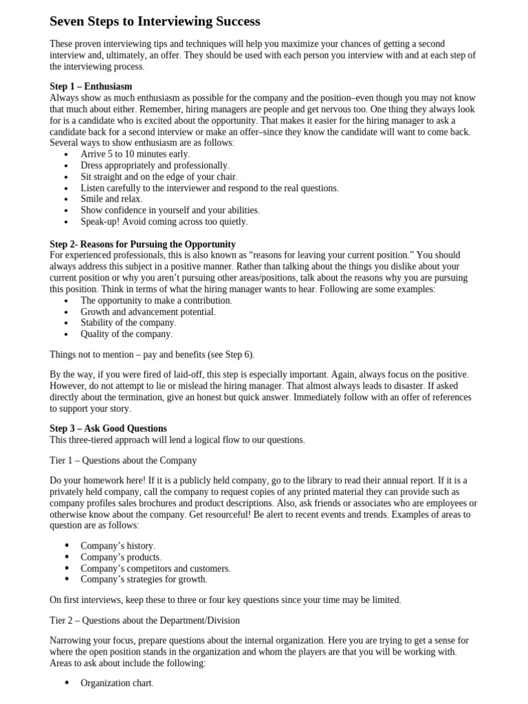 Seven Steps To Interviewing Success | PDF | Salary | Interview