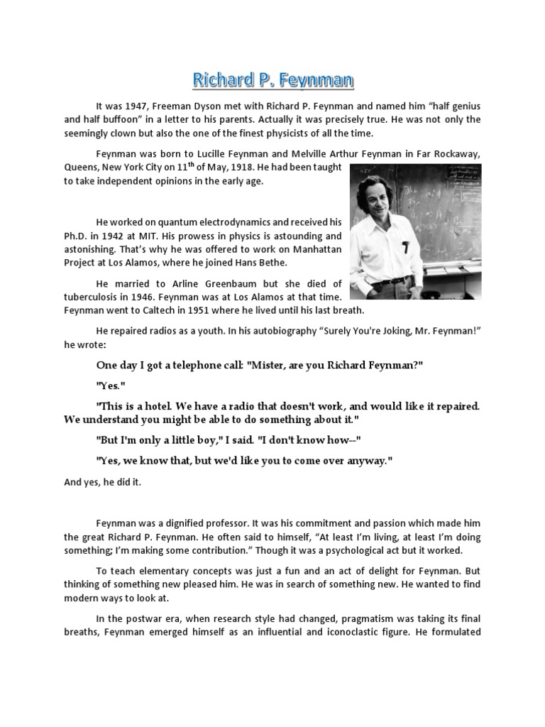 Richard P. Feynman by Bilal Azam | PDF | Richard Feynman | Quantum ...