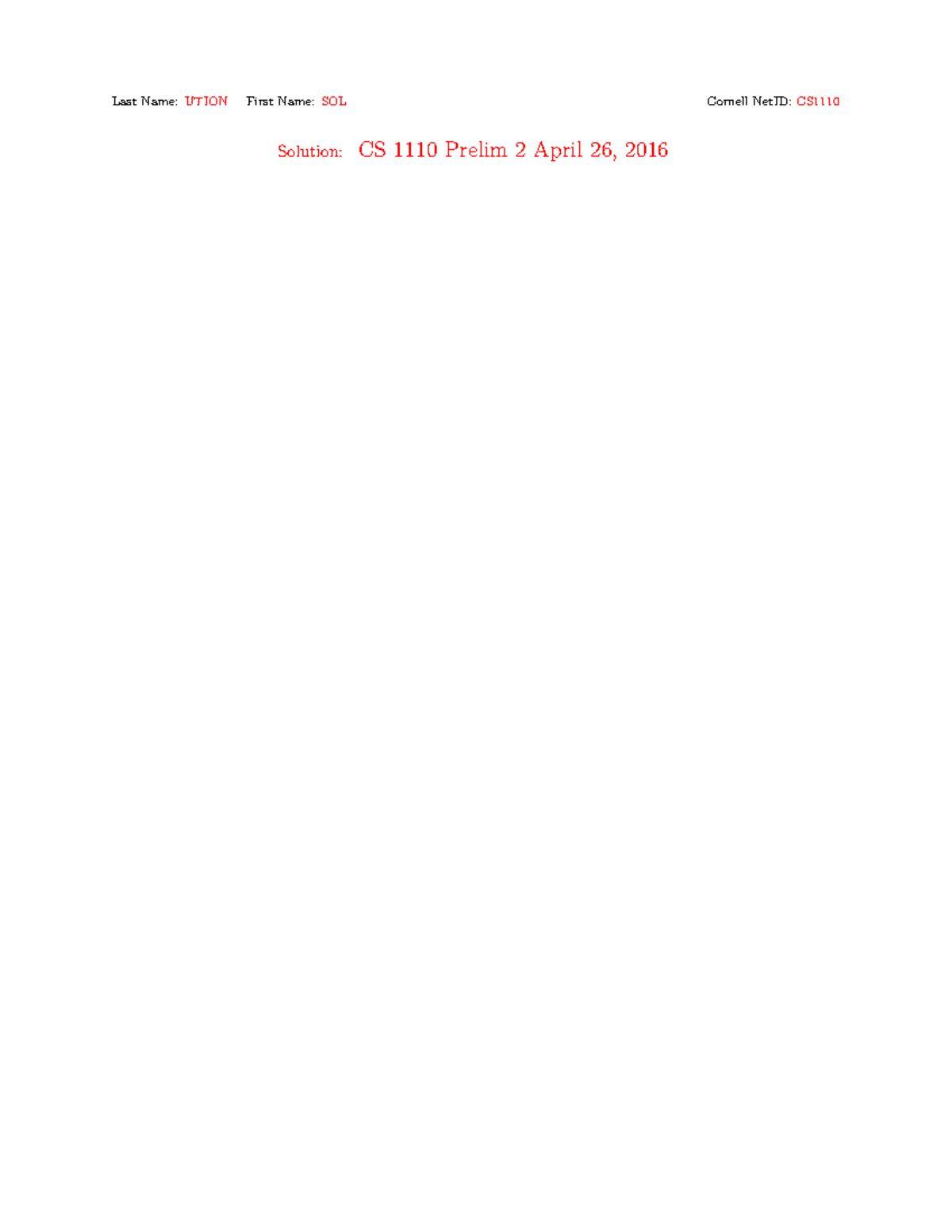2014 spring prelim 2 answers - Last Name: UTION First Name: SOL Cornell ...