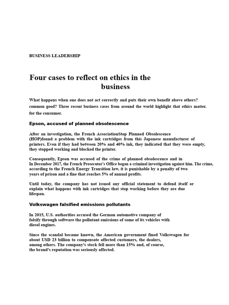 SOLUTION: C467 Business Ethics Violations - Studypool
