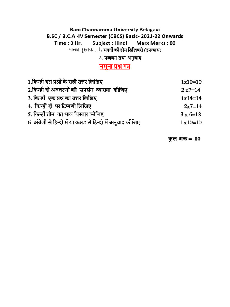 BSc&BCA 4th Sem Hindi MQP CBCS | PDF