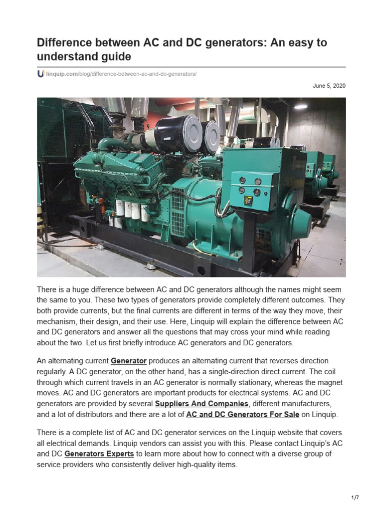 Difference Between AC and DC Generators | PDF | Electric Generator ...