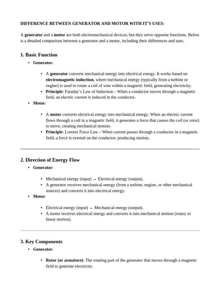 Generator vs Motor: Key Differences | PDF | Electric Generator ...