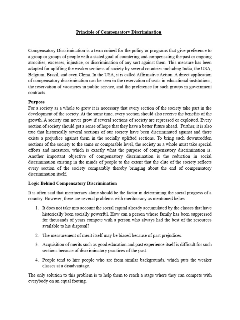 Principle of Compensatory Discrimination | PDF | Discrimination | Justice