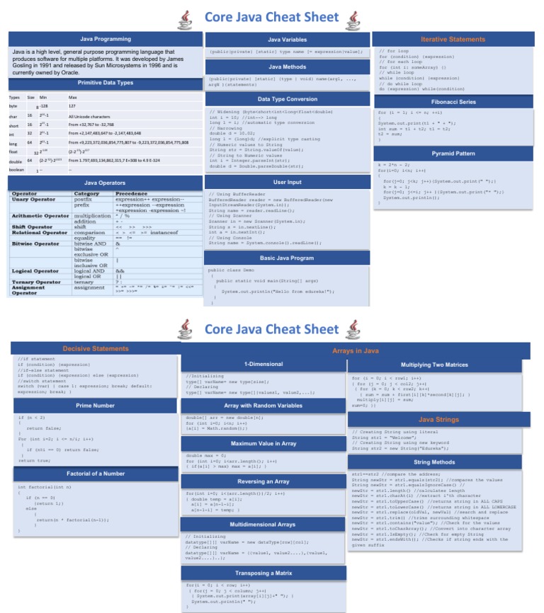 Java Cheatsheet - Core Java Cheatsheet | Edureka