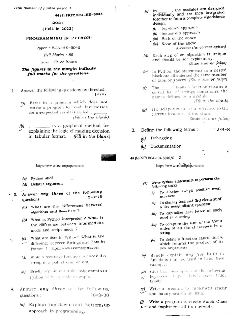 Bca 5 Sem Programming in Python 44 5 Prpy Bca He 5046 2022 | PDF
