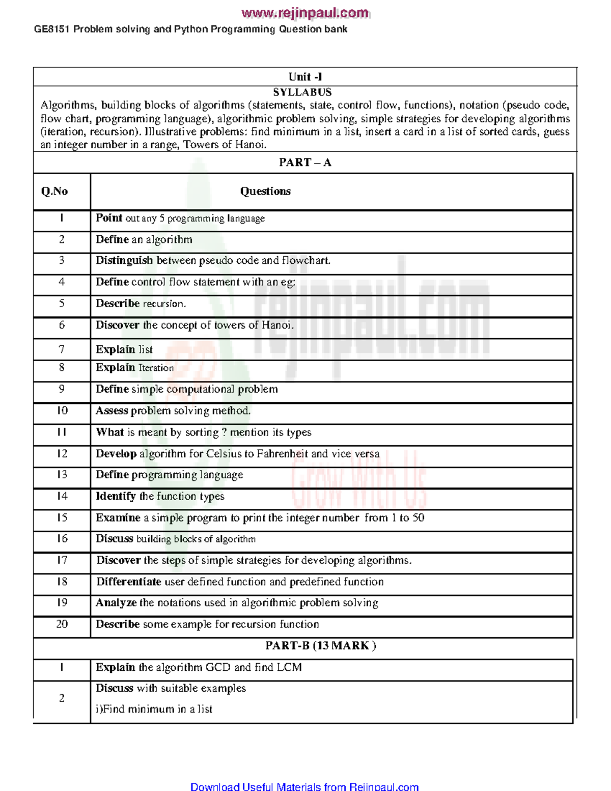 Based on this image's title: “Important Questions - Python - GE8151-PROBLEM SOLVING AND PYTHON ...
