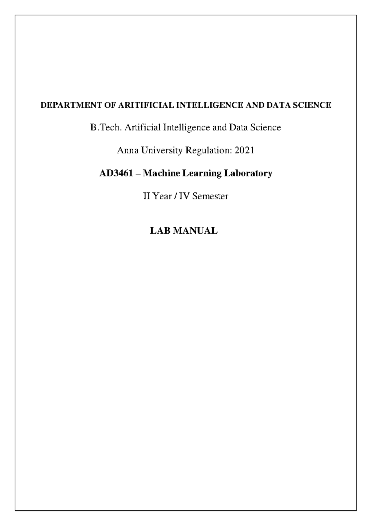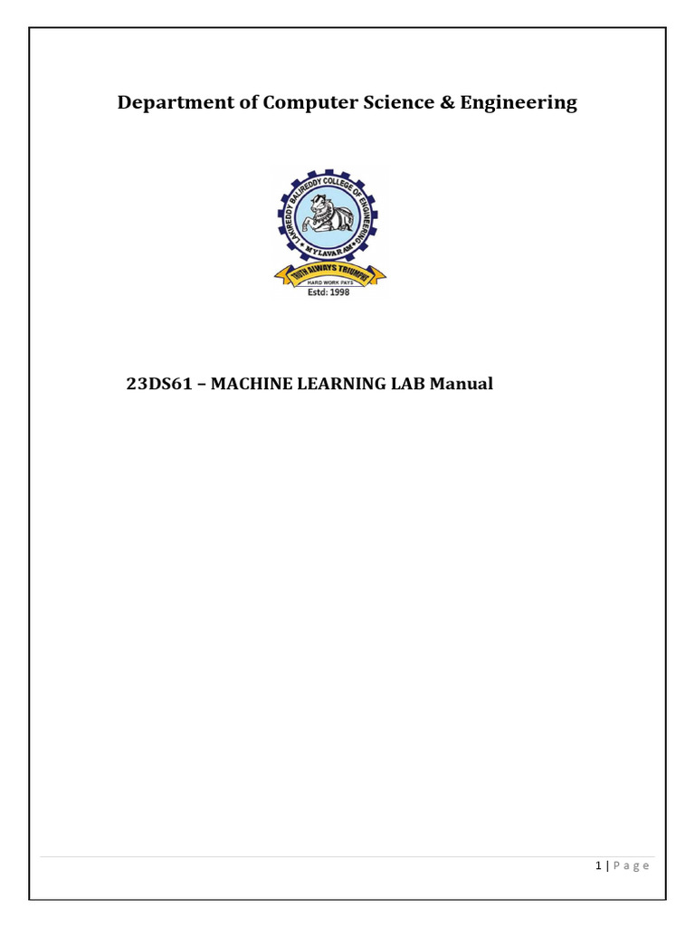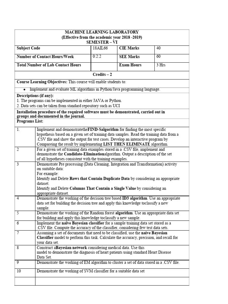 Based on this image's title: “Machine Learning Lab Manual (BCAI 601): Concept Learning Algorithms in ...