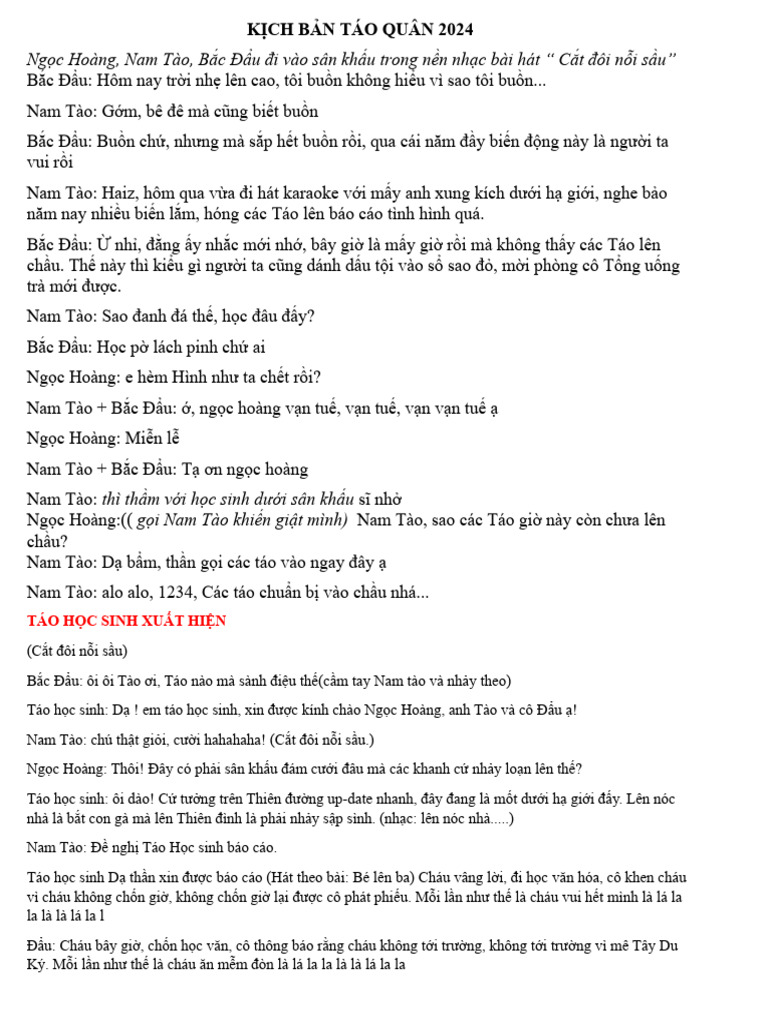 Táo - Kịch Bản Táo Quân 2024 | PDF