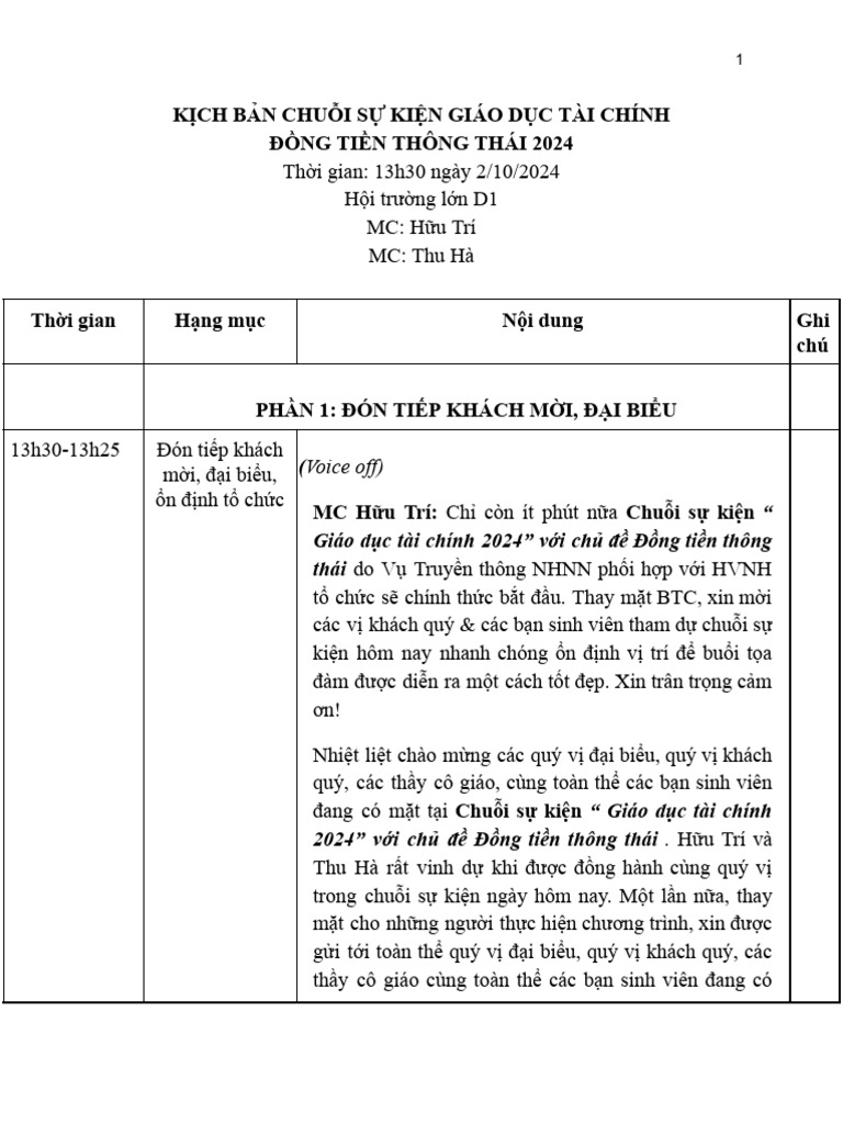 Kịch bản phiên 1 | PDF
