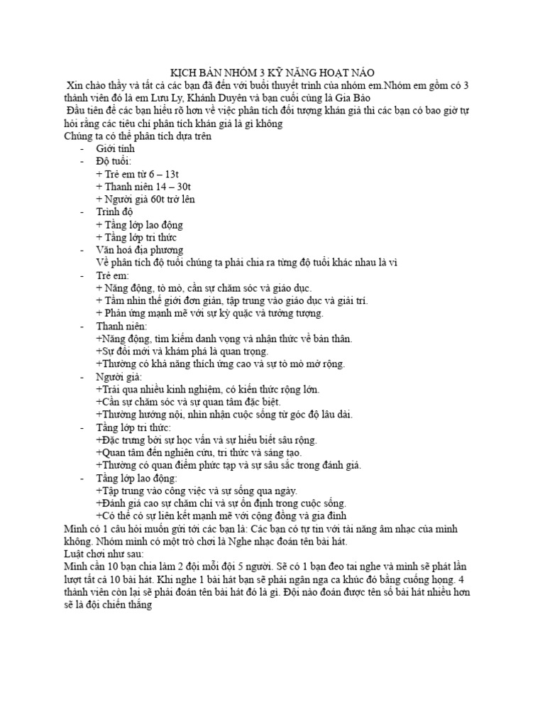 KỊCH BẢN NHÓM 3 KỸ NĂNG HOẠT NÁO | PDF