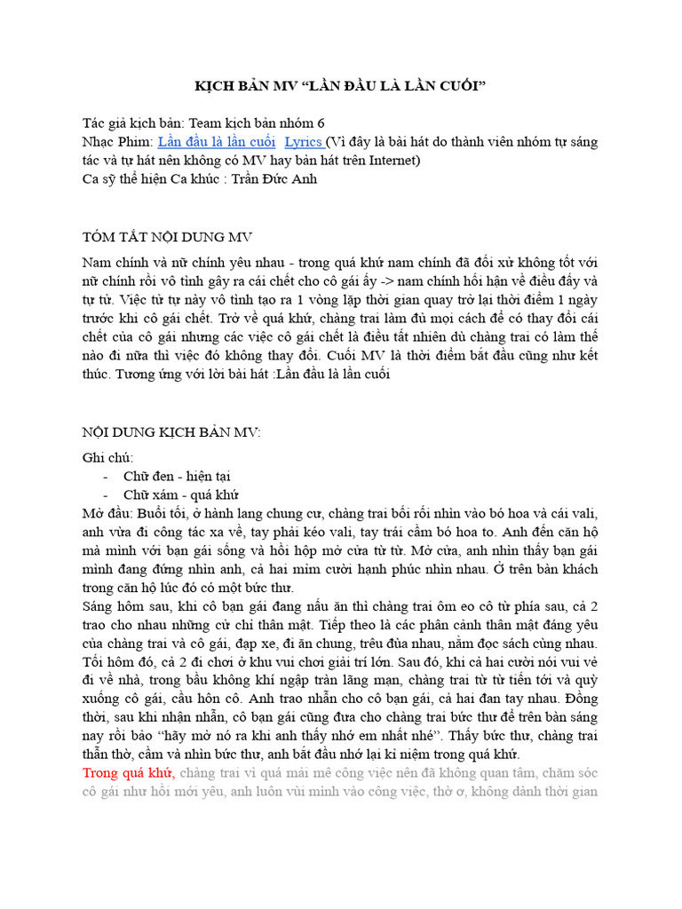 Kịch bản văn học MV - Nhóm 6 | PDF