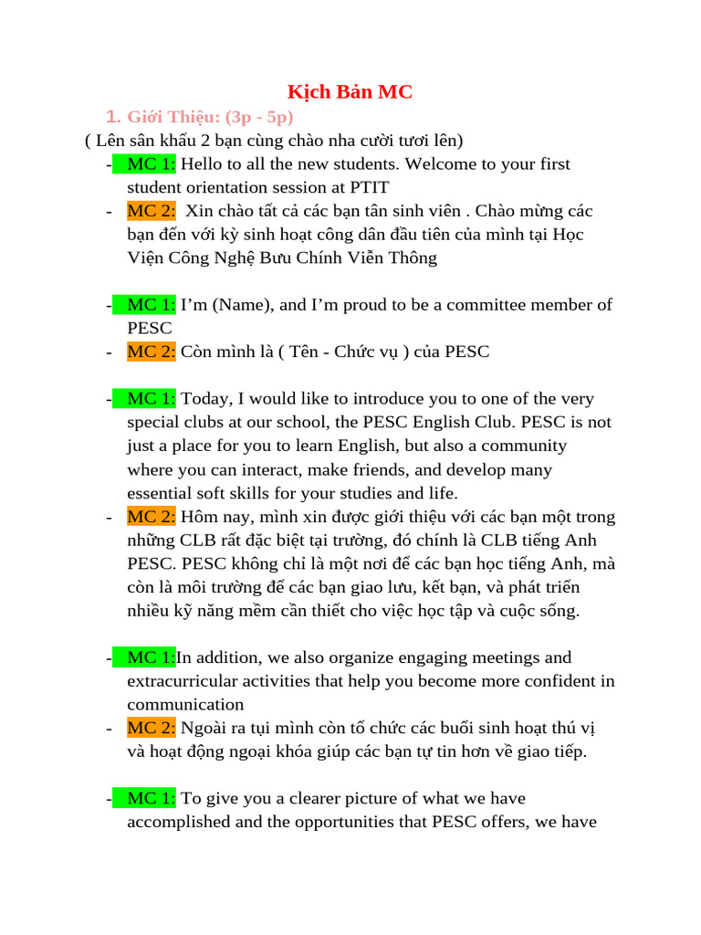 Kịch Bản MC | PDF