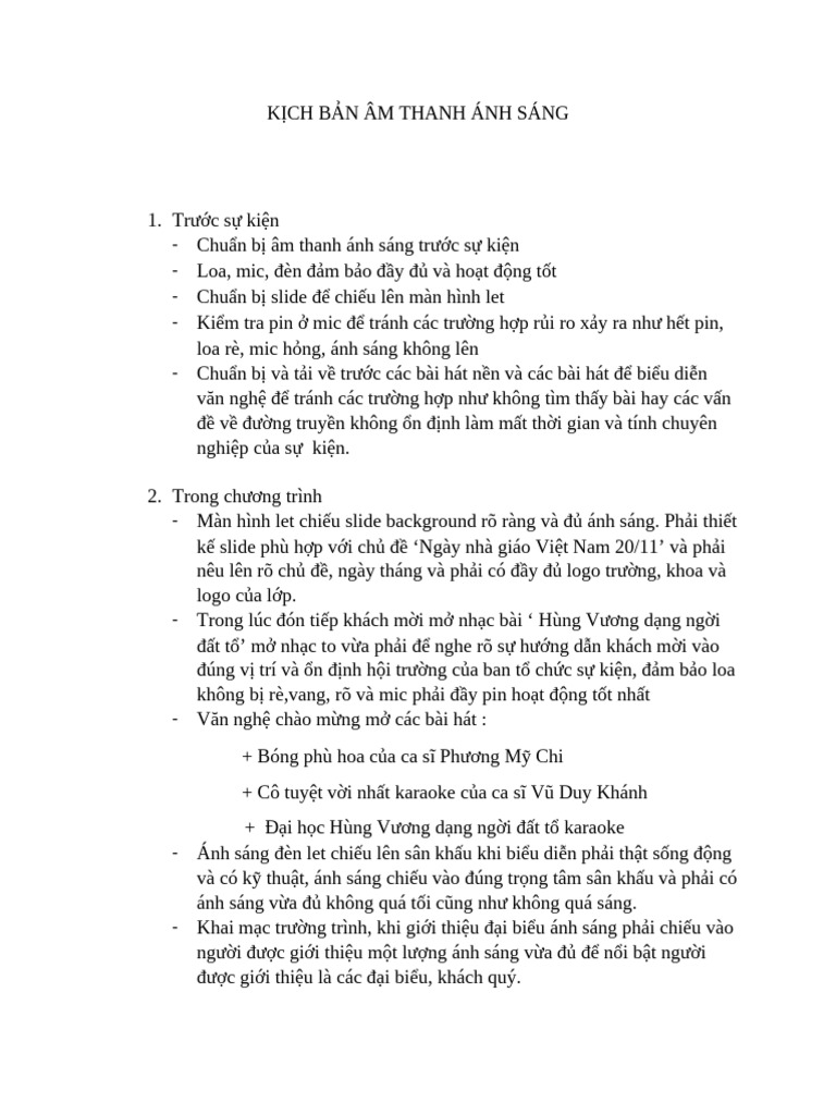 Kịch Bản Âm Thanh Ánh Sáng | PDF