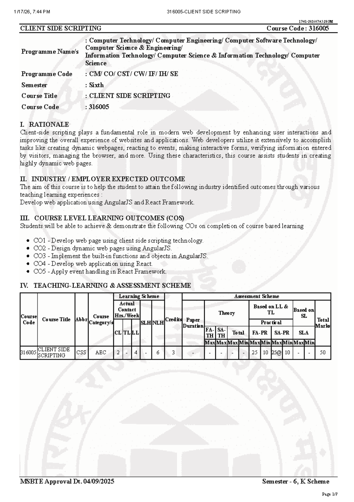 CLIENT SIDE SCRIPTING Syllabus - Course Code: 316005 - Studocu
