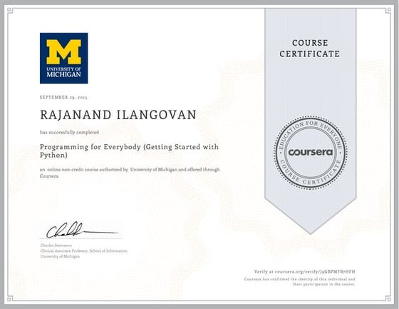 Learn Python for Everybody by Coursera | Anjali Kakkadp posted on the ...