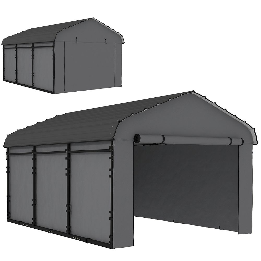 Outsunny 10ft x 15ft Metal Carport with Metal Roof and Removable Sidewalls