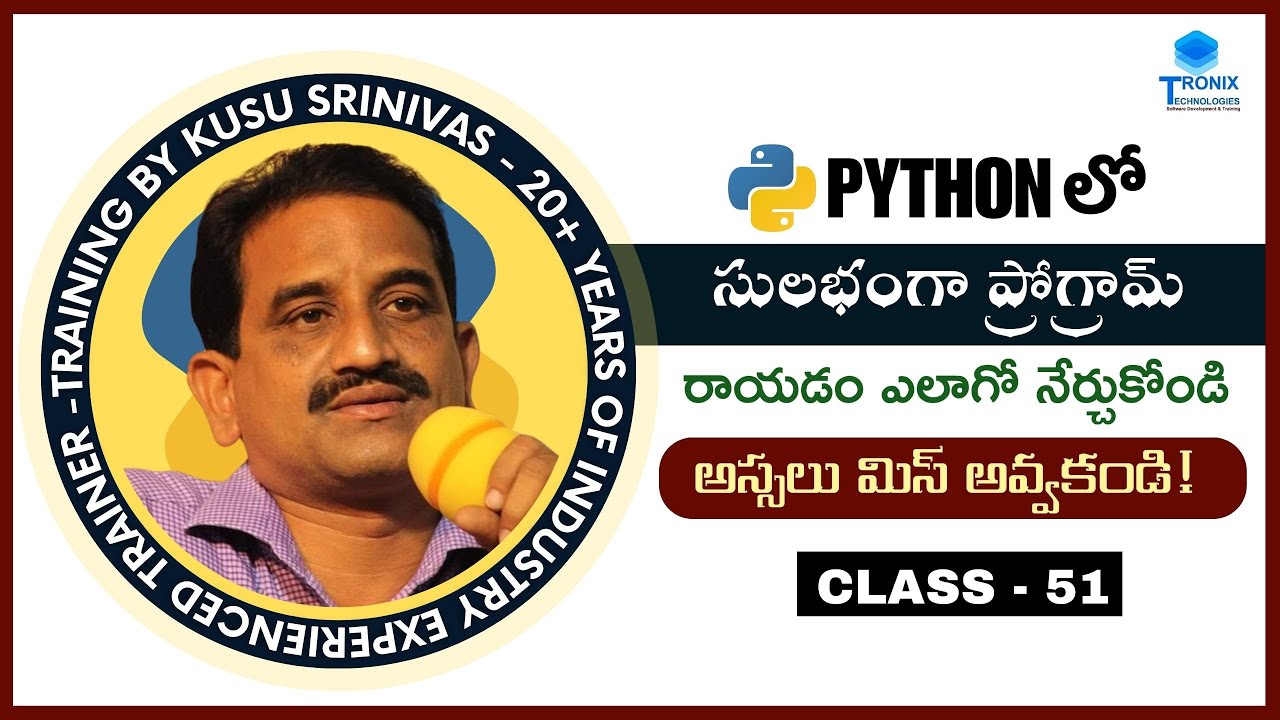 Based on this image's title: “Python For Beginners in telugu - పైథాన్ కోడింగ్