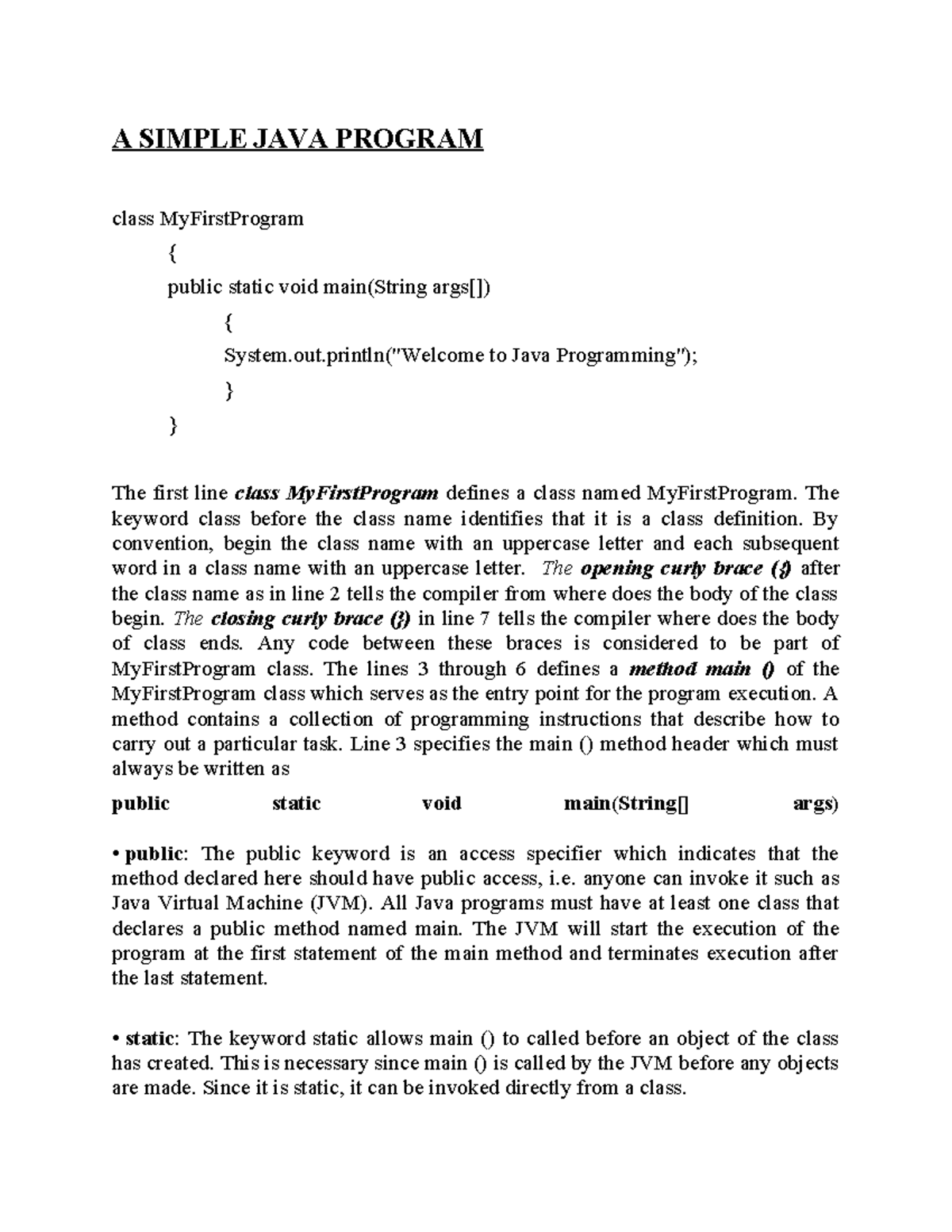 A Simple JAVA Program - A SIMPLE JAVA PROGRAM class MyFirstProgram ...