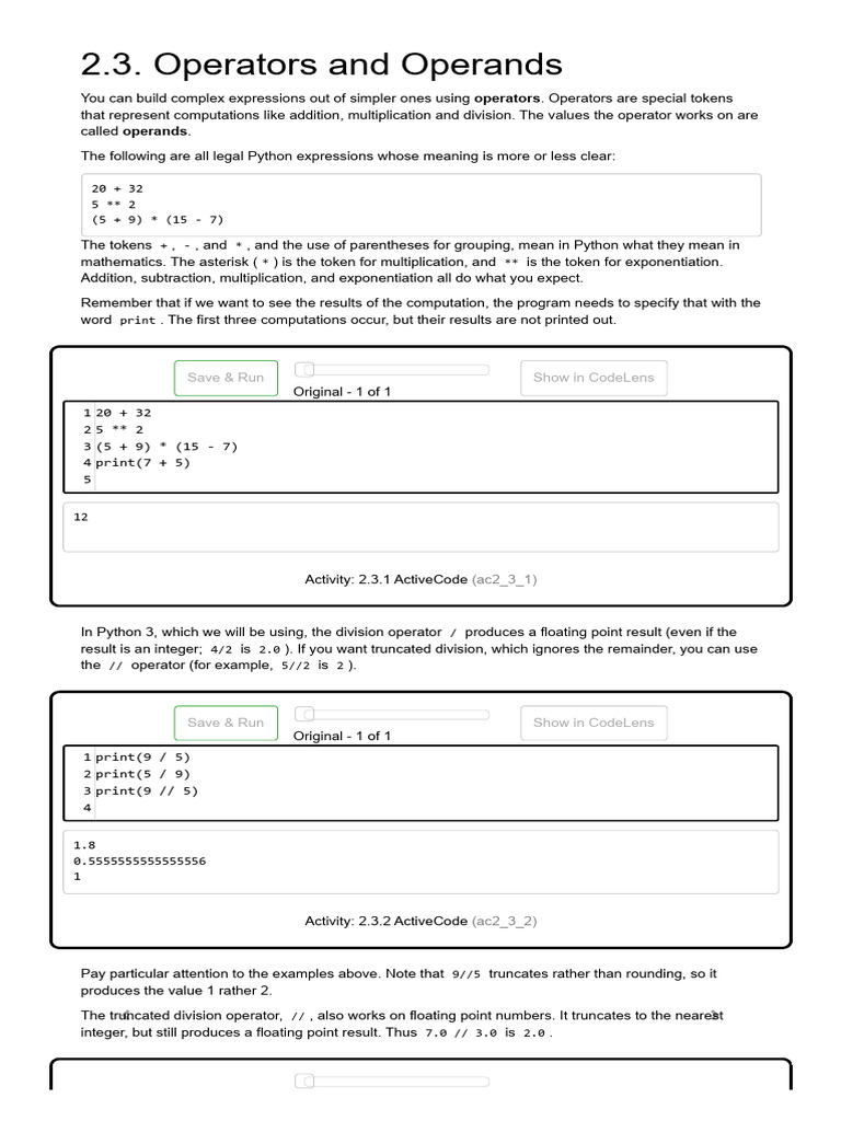 2.3. Operators and Operands | PDF | Division (Mathematics) | Multiplication
