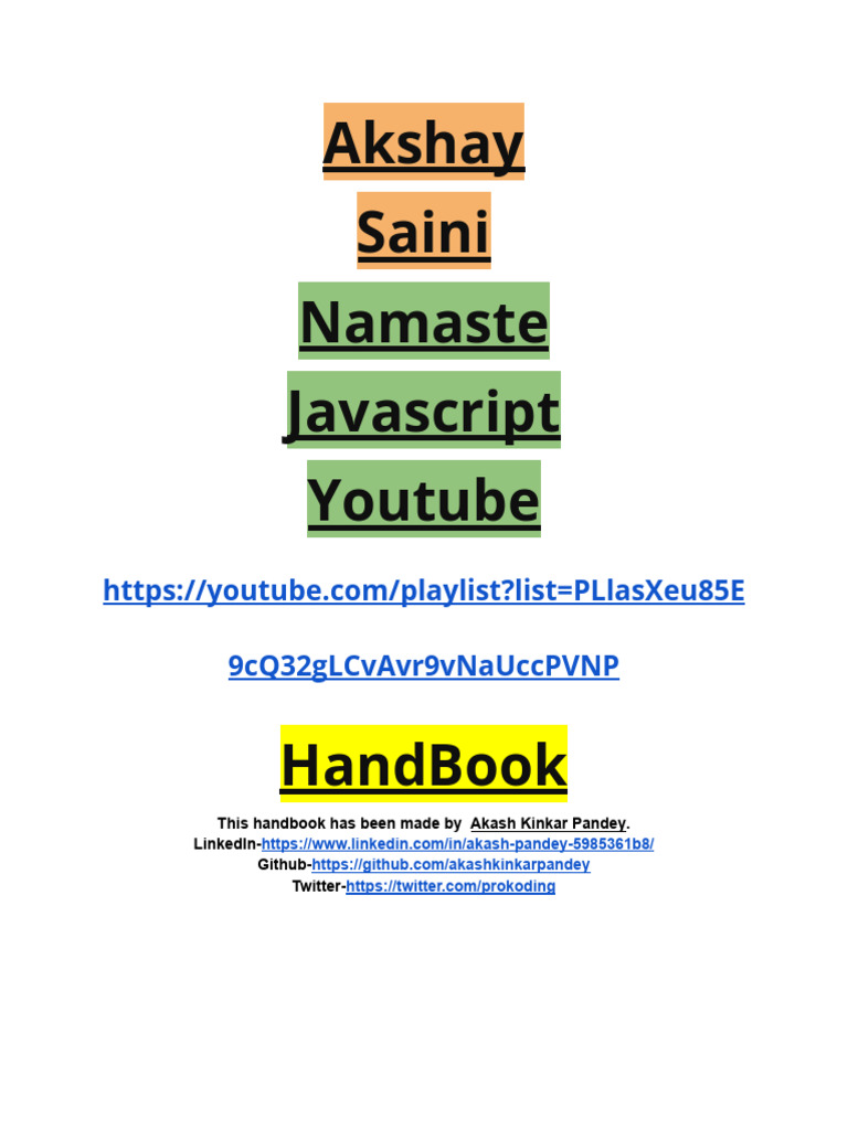 Namaste Javascript Handbook by Akash Pandey | PDF | Scope (Computer ...