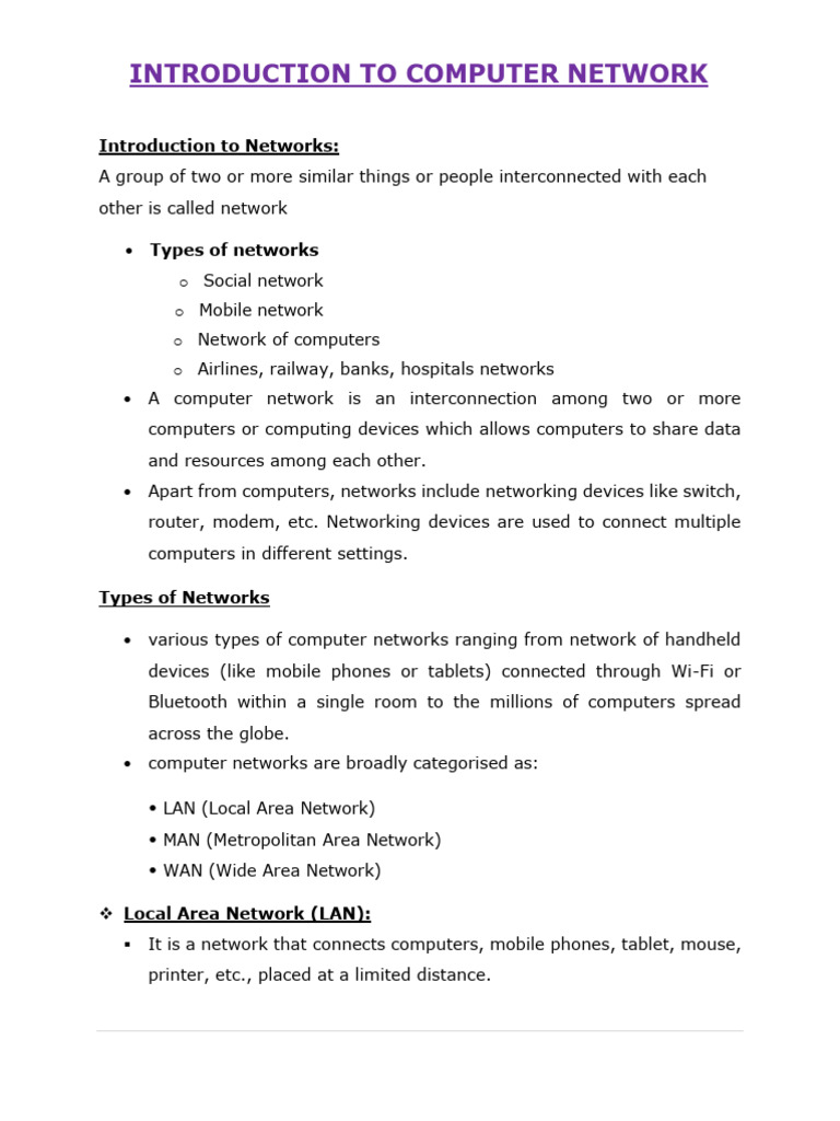 Introduction To Computer Networks Notes | PDF | Computer Network ...