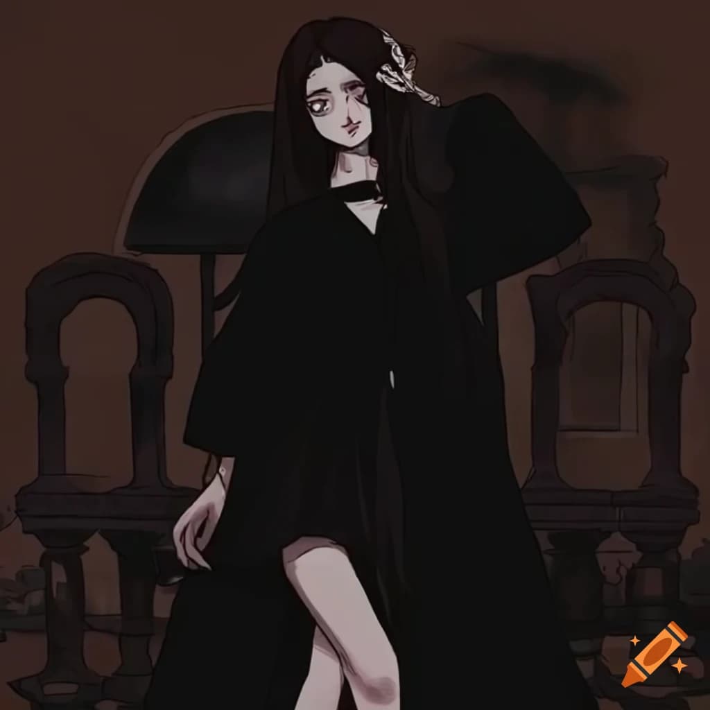 Anime-style young woman with dark academia aesthetic on Craiyon