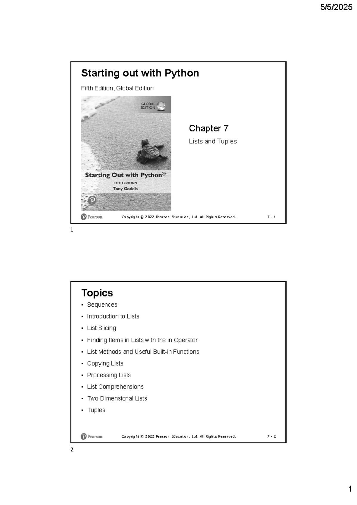 Starting Out with Python (CS101) Chapter 7: Lists and Tuples - Studocu
