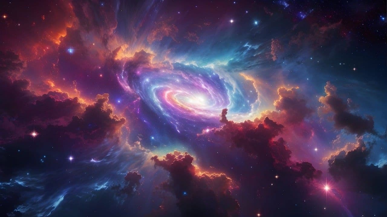 The birth of a spiral galaxy and expansion of space, gas dust clouds of ...