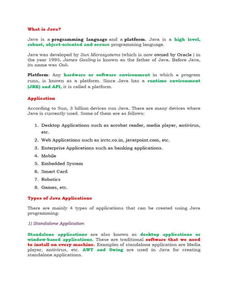 JAVA notes in PDF | Java language eBook for download - ClassNotes