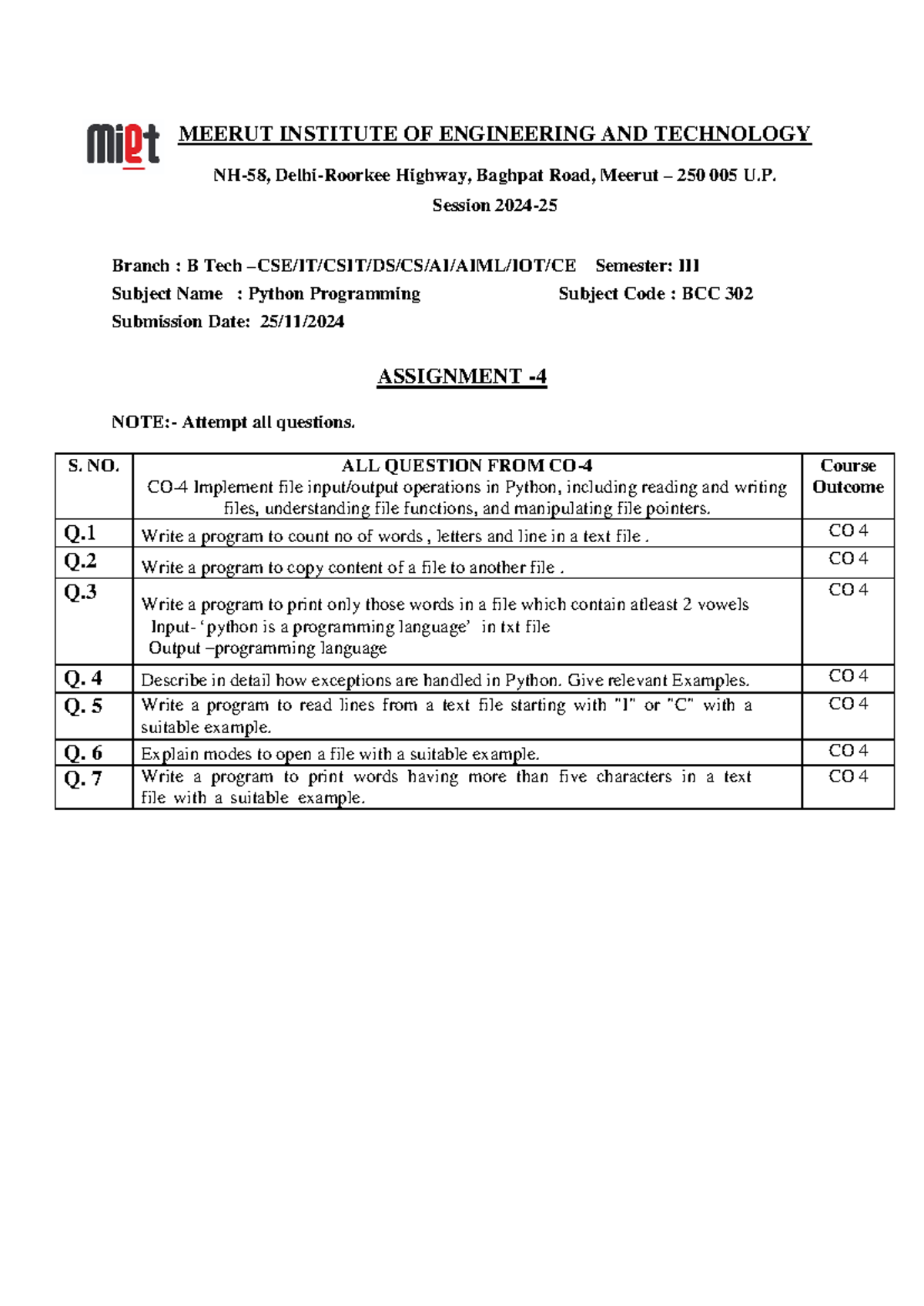 BCC 302 Python Programming Assignment 4 - File Operations Notes - Studocu