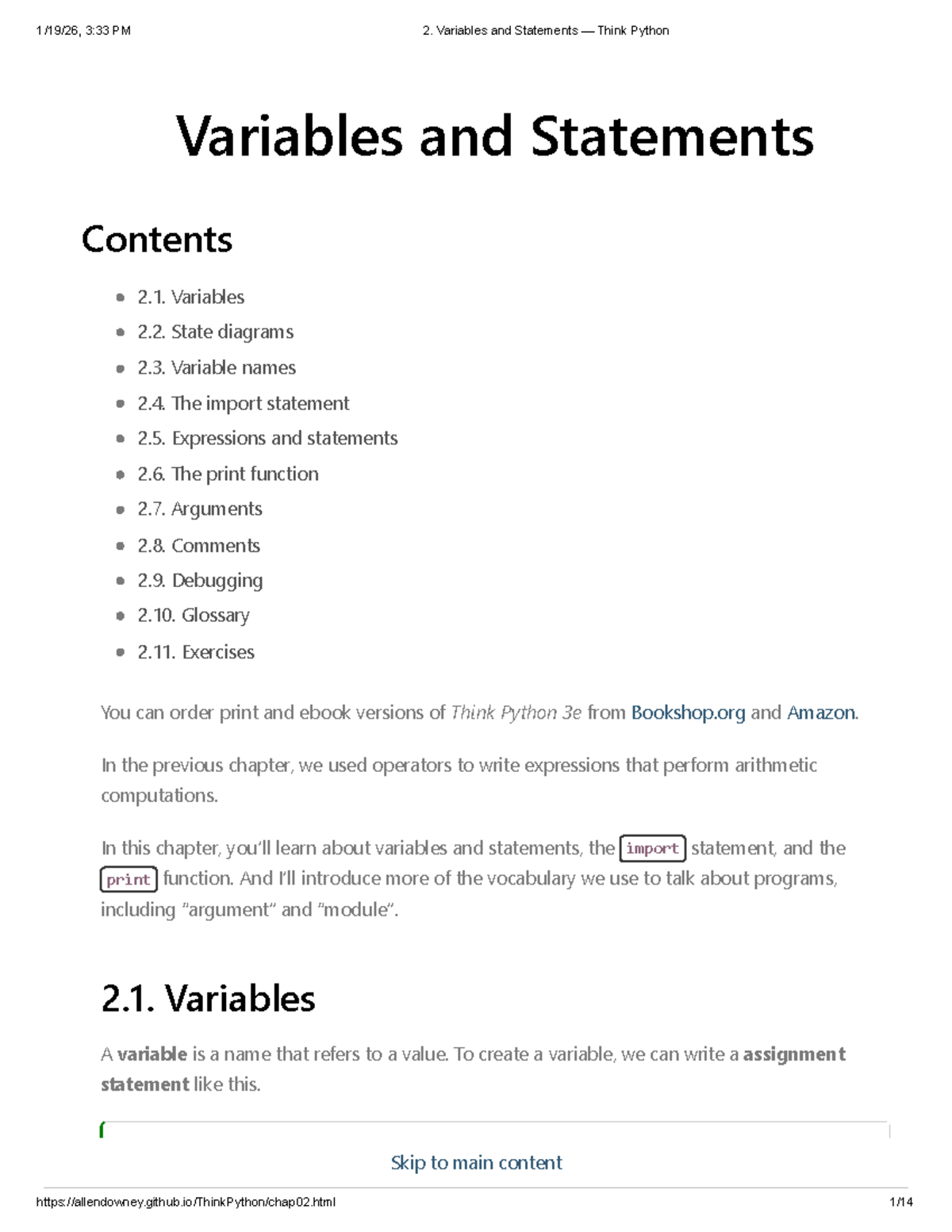 Chapter 2: Variables and Statements - Think Python - Studocu
