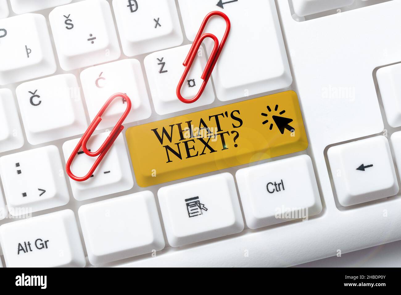 Sign displaying What S Next Question. Concept meaning Get information ...
