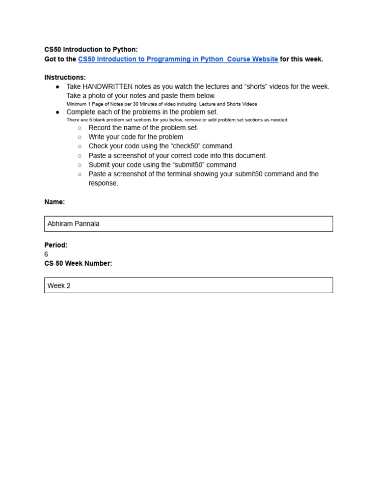 Abhiram Pannala - Week 2 Python - CS50 Datasheet | PDF | Computer ...
