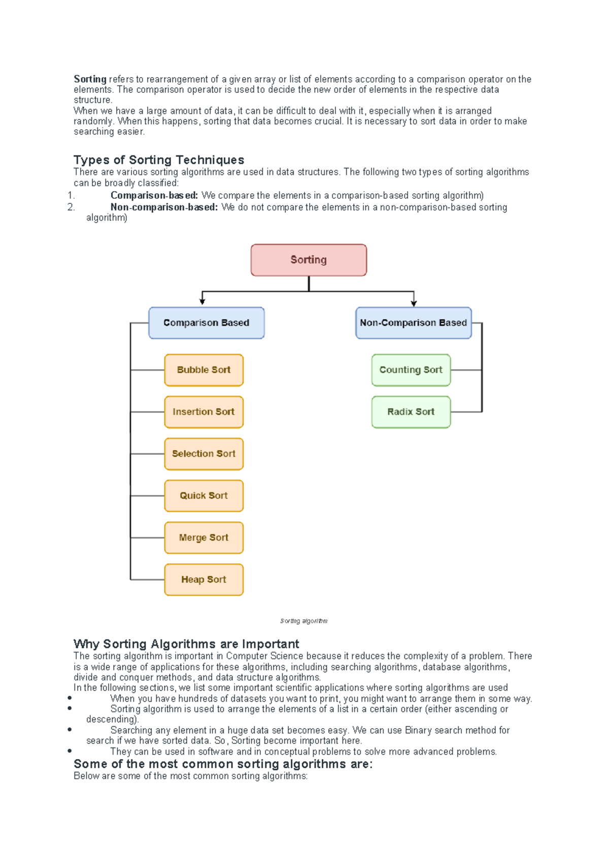Sorting Algorithms: Types, Importance, and Examples in CS - Studocu